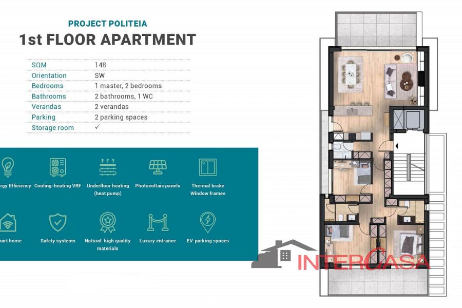 Το ακίνητο έχει ενδοδαπέδια θέρμανση με αντλία θερμότητας, ψύξη-θέρμανση VRF, φωτοβολταικά πάνελ, ηλιακά πάνελ, θερμοδιακοπτόμενα αλουμίνια, εγκατάσταση smart home, συναγερμό, 2 υπόγειες θέσεις στάθμευσης με δυνατότητα φόρτισης ηλεκτρικών οχημάτων, αποθήκη.