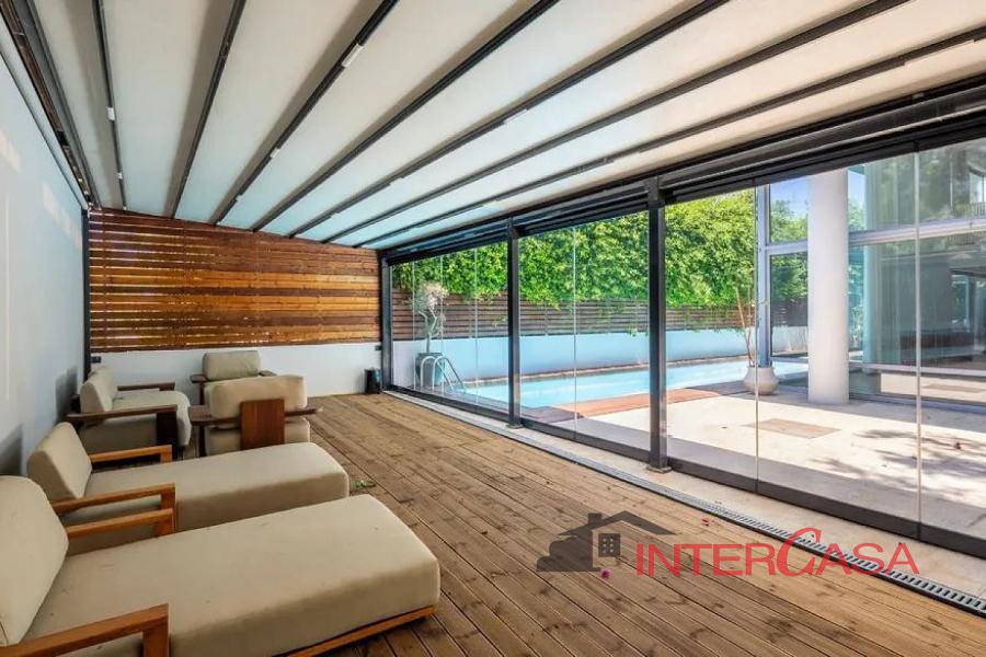 Πολυτελής μεζονέτα 210 τ.μ,Ισόγειο, πρώτος και δεύτερος όροφος,WC επισκεπτών στο ισόγειο, Master bedroom με ιδιωτικό μπάνιο στον πρώτο όροφο,Δύο υπνοδωμάτια με κοινό μπάνιο στον δεύτερο όροφο,Δευτερεύον σαλόνι/TV lounge με mini bar (μικρό ψυγειάκι),Ιδιωτική πισίνα και αποκλειστικός κήπος,Τζάκι και ηλεκτρονικές κουρτίνες,Μοντέρνα κουζίνα με υψηλής ποιότητας συσκευές,Σύστημα ασφαλείας με κάμερες,Χώρος πλυντηρίου και αποθήκευσης,
