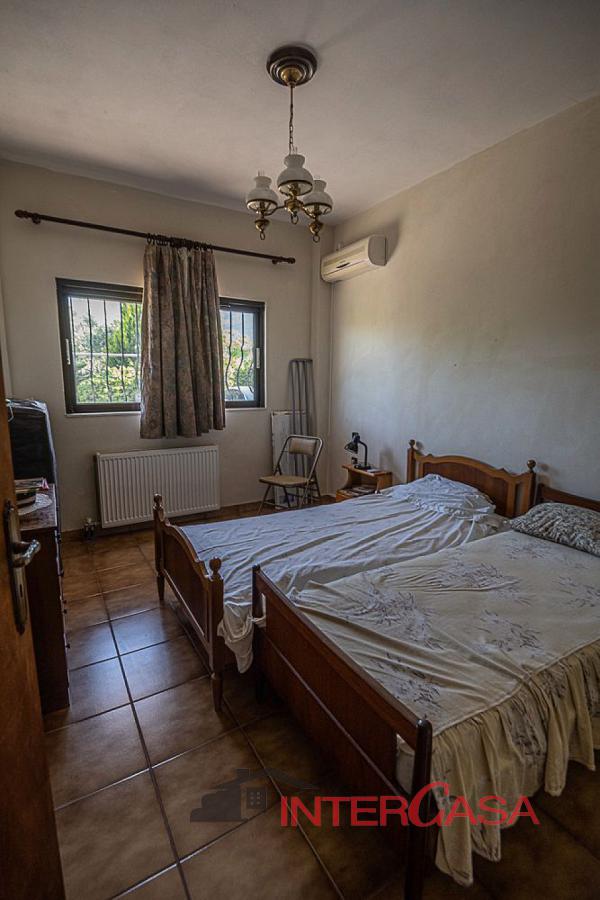 Ισόγειο 111,60τ.μ+28,70τ.μ βοηθητικούς χώρους, 2 υπνοδωμάτια-το ένα με δικό του ανεξάρτητο μπάνιο, εντοιχισμένες ντουλάπες, κλιματισμός, προθάλαμος 1,50τ.μ, 2ο μπάνιο, κουζίνα με πάσο με εσωτερικό τοίχο επενδυμένο με πέτρα και σαλόνι με με αερόθερμο μαντεμένιο τζάκι επενδυμένο με πέτρα, πλακάκια σε όλους τους χώρους, παράθυρα αλουμινένια με διπλά τζάμια και σίτες και